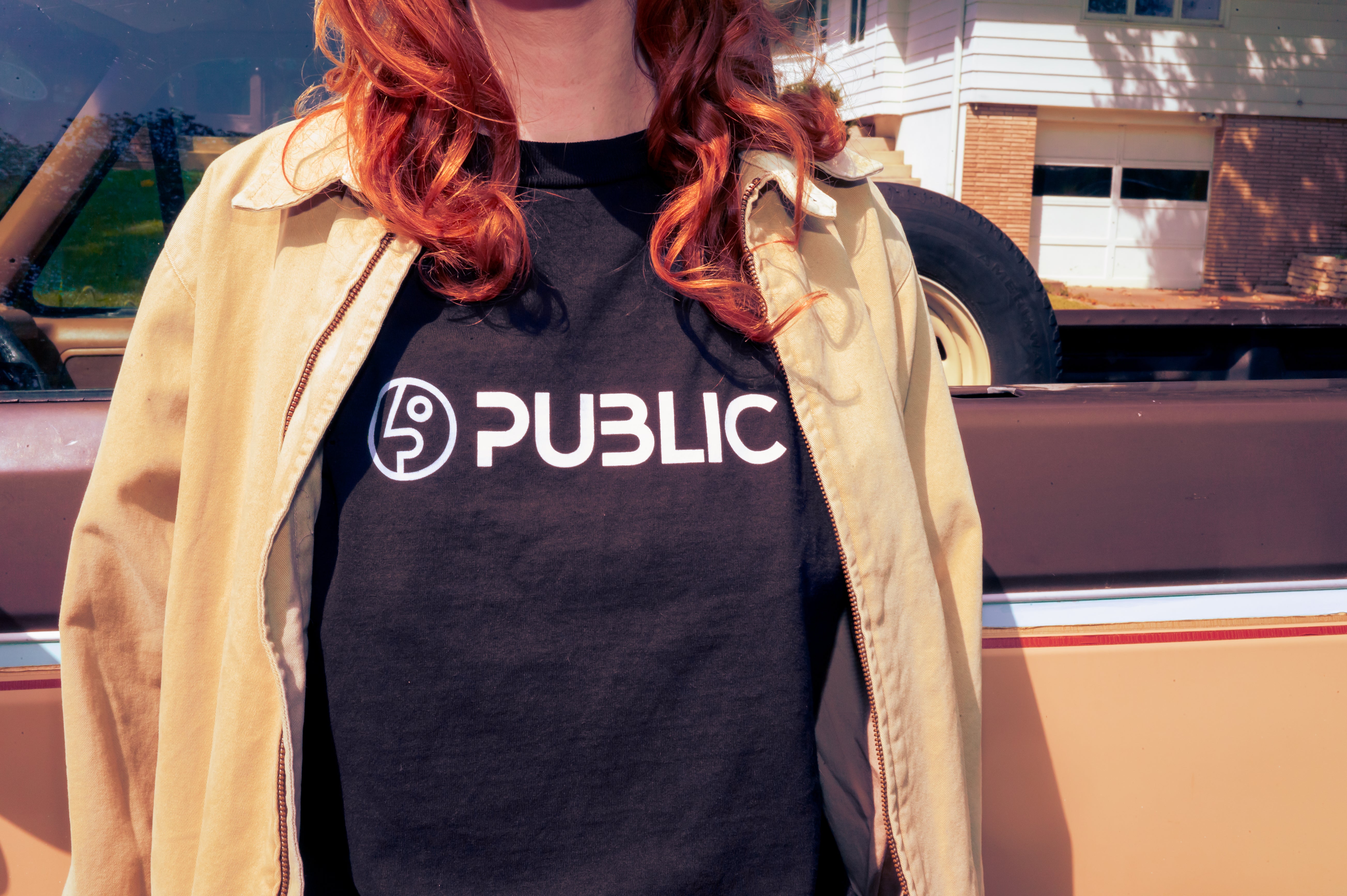 A comfortable black tee featuring a PUBLIC logo, perfect for everyday wear.