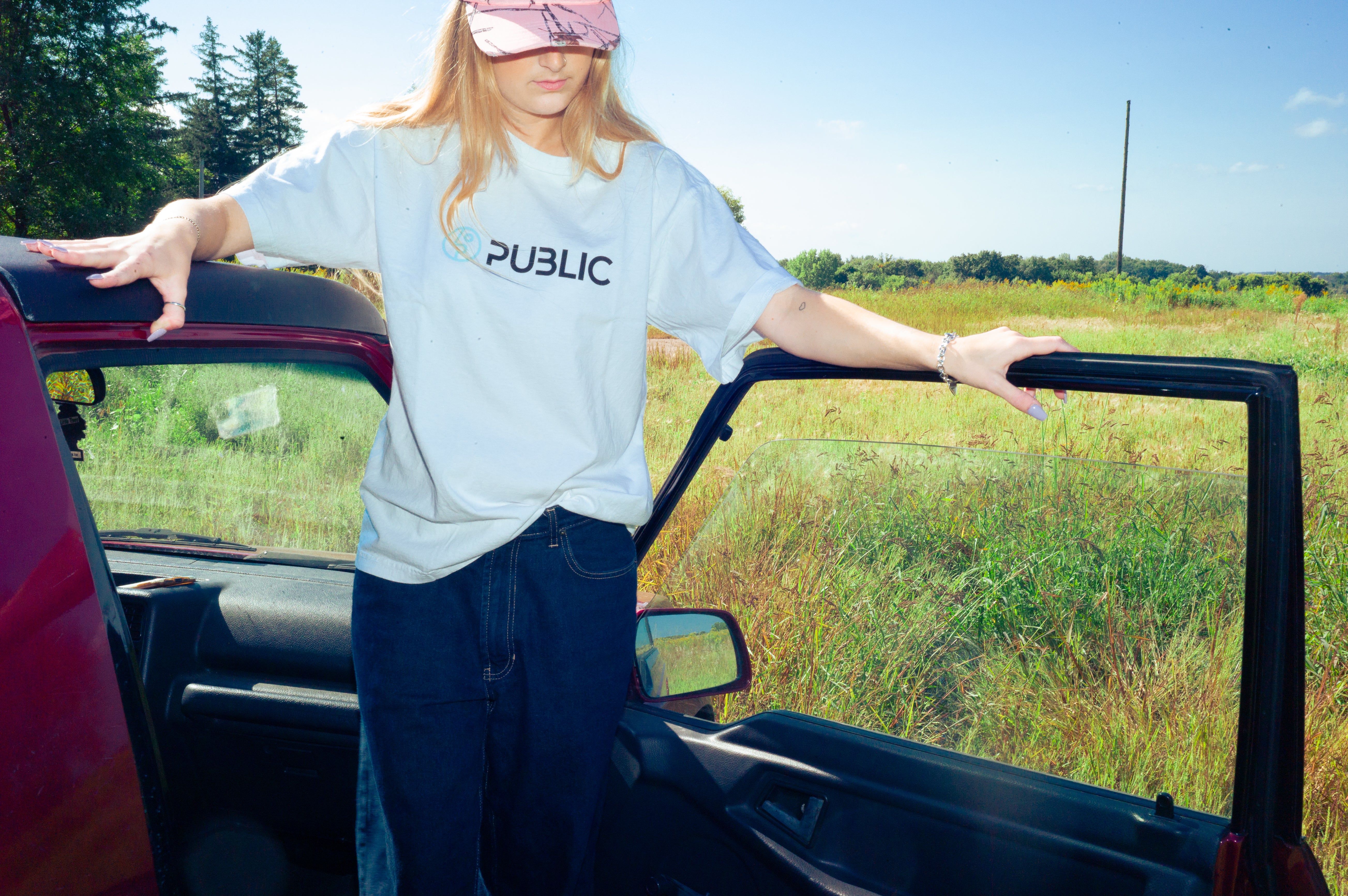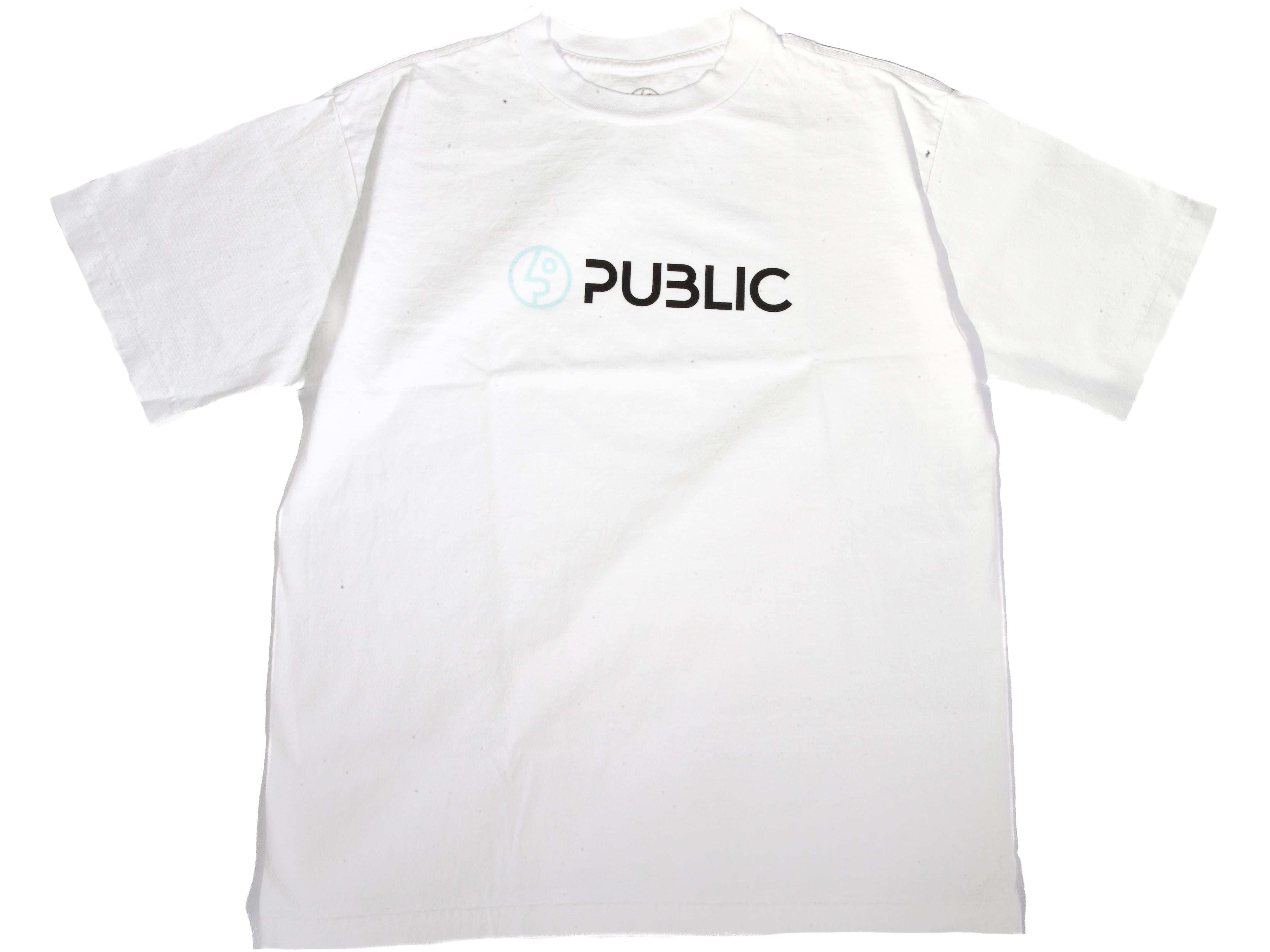 A comfortable white tee featuring a PUBLIC logo, perfect for everyday wear.